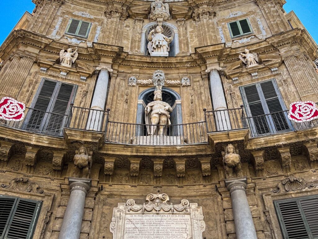 At each of the four corners of Quattro Canti, a three-story façade is decorated with fountains at the bottom, celebrating the four seasons. The middle represents four Spanish kings of Sicily, which were originally in bronze and later replaced with the current marble statues. Finally, in the top order the statues of the patron saints of each district of Palermo, gaze out watchfully over the city.