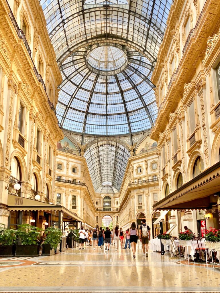 Just beside the Duomo, Galleria Vittorio Emanuele II is Milan’s answer to “what if a shopping arcade felt like a cathedral?” Built in the 1860s and completed in 1877, it’s one of the oldest and most beautiful covered galleries in the world. A soaring glass-and-iron dome, intricate mosaic floors, and colonnaded arcades lined with some of the most expensive retail in Europe.