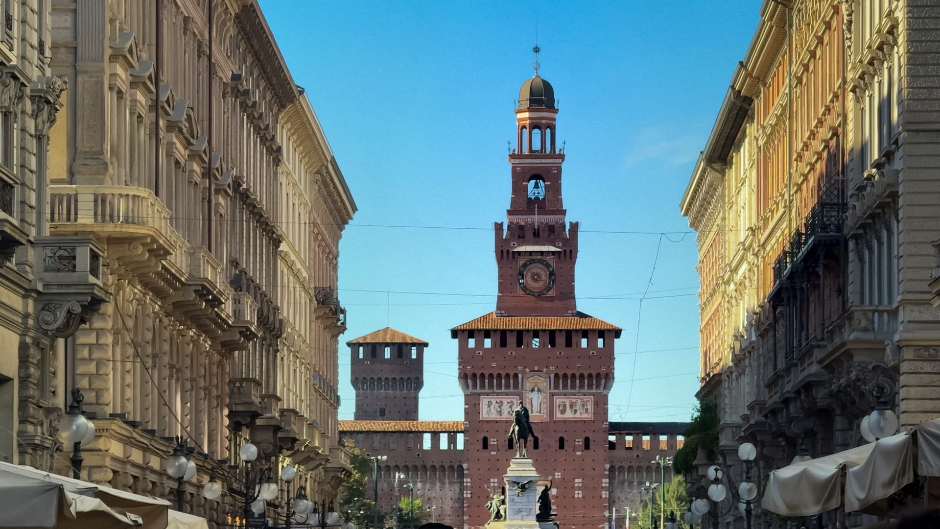 After lunch, head west on foot. It’s about a 20-minute walk from the Duomo, which is long enough to let everything settle. The route along Via Dante is one of Milan’s more pleasant pedestrian stretches before it opens out dramatically onto the castle’s red-brick facade.