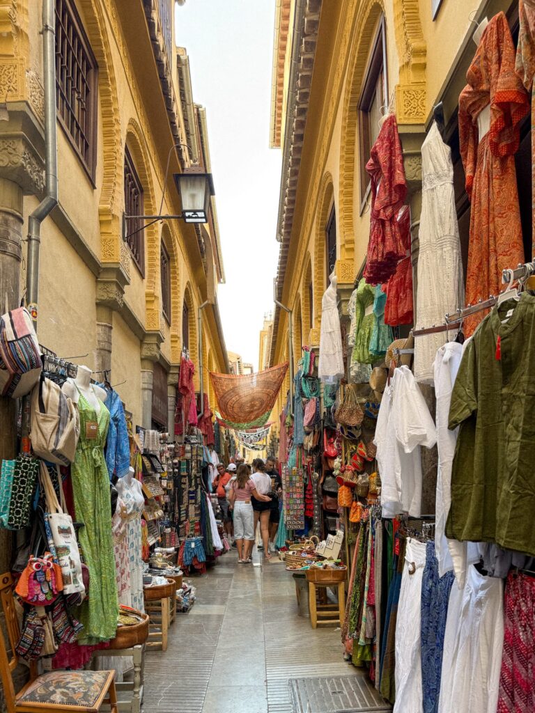 Just a few minutes away, the Alcaicería is Granada’s old bazaar area. Historically, this was the city’s silk market, and although what you see today is a later reconstruction rather than the full original market, it still gives you that maze-like, souk-style feel that makes this part of Granada so fun to explore.